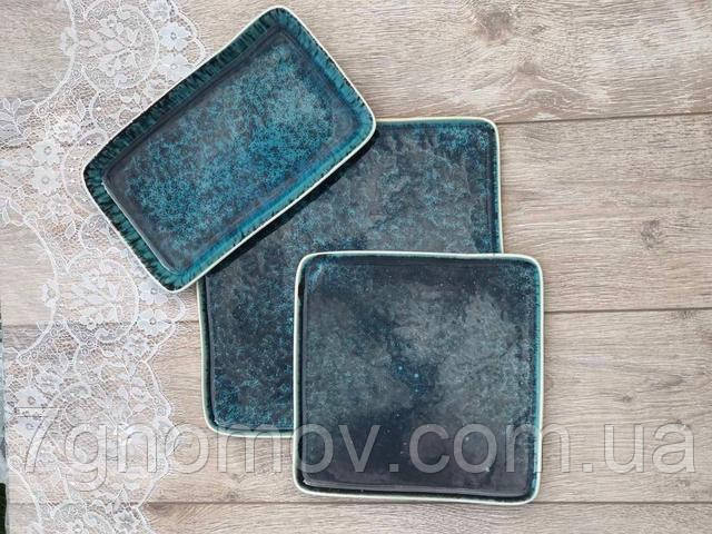 Набір 6 керамічних тарілок для подачі прямокутна синя Лазурит 24 см